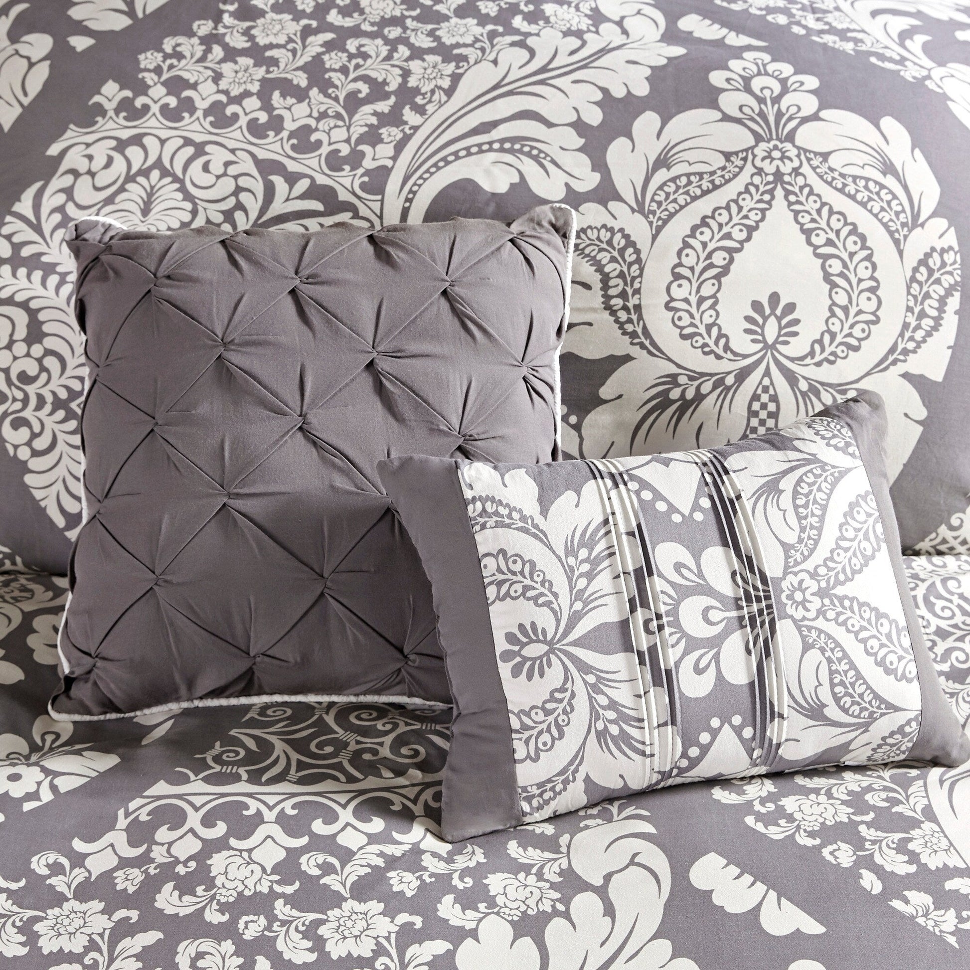 - Ensemble complet de 7 pièces comprenant une couette, 2 taies d'oreiller assorties, 3 oreillers décoratifs et une jupe de lit
