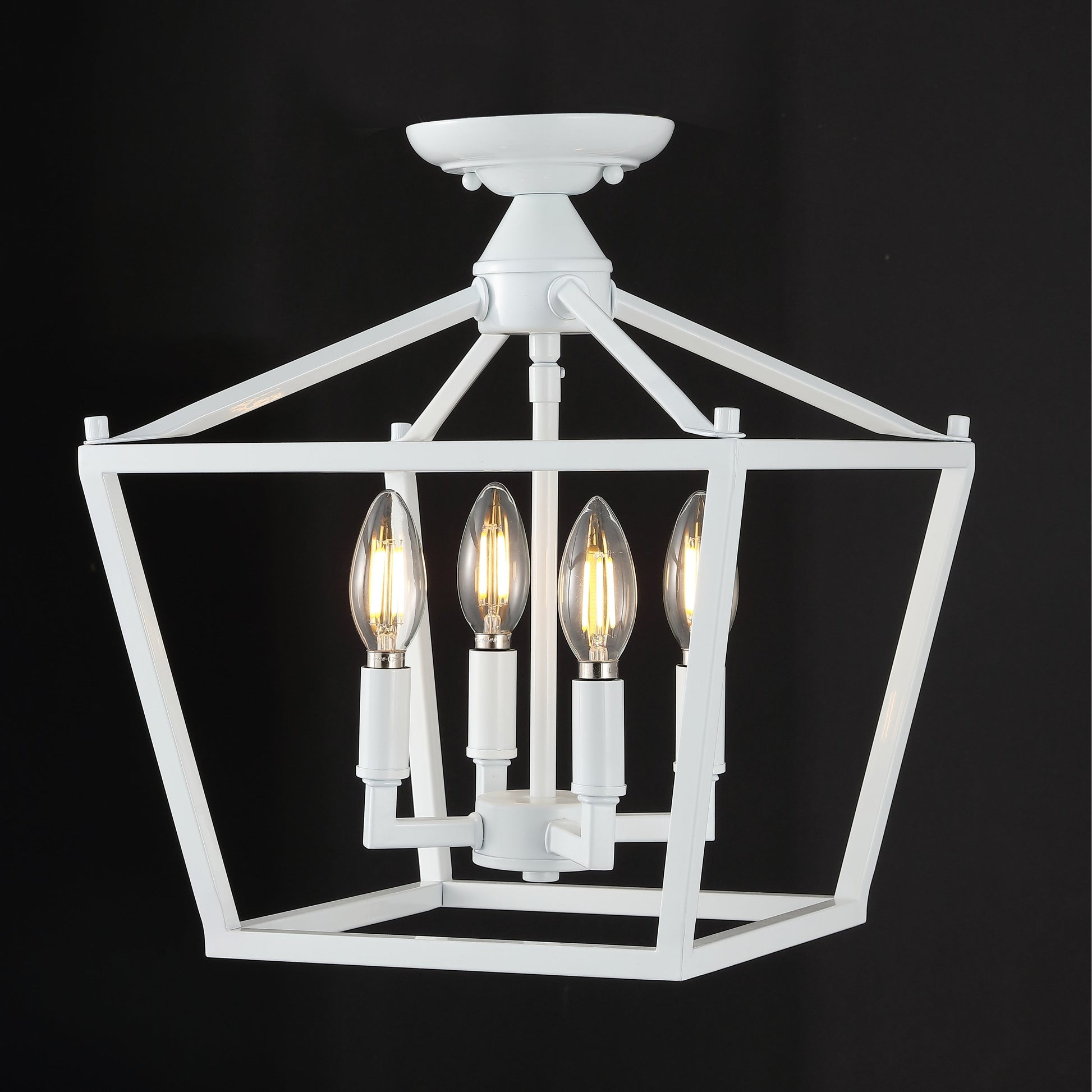Apportez une touche de charme rustique moderne à votre intérieur avec le plafonnier LED Milton Mini Lantern à 4 lumières en fer de JONATHAN Y. Avec sa forme de lanterne classique et sa finition noire sobre, ce modèle intemporel est idéal pour les plafonds bas et s'intègre parfaitement dans différentes pièces de votre maison. Son support semi-encastré abrite quatre ampoules LED de type candélabre et est compatible avec les variateurs LED pour une expérience d'éclairage entièrement personnalisable.