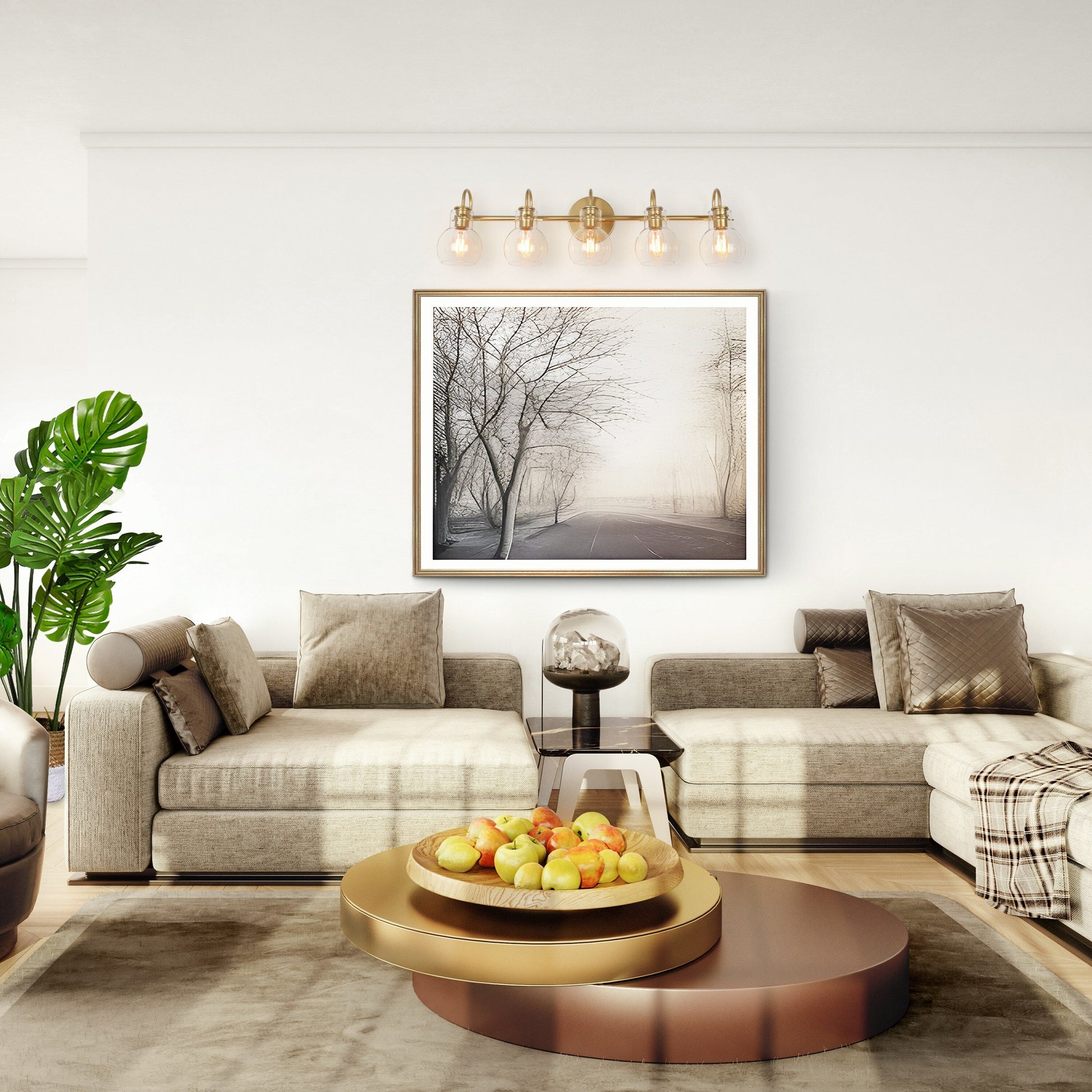 Ajoutez une touche de style campagnard moderne à votre salle de bains avec ce luminaire de salle de bain au design soigné. Disponible en finitions noire ou dorée peintes à la main, il est doté d'une plaque arrière ronde et d'une simple traverse supportant trois ou cinq abat-jours en verre arqués de style tempête. Le résultat est une silhouette épurée et charmante qui s'intègre à tous les intérieurs. Facile à installer et compatible avec les variateurs, ce luminaire est également garanti 2 ans, vous offrant style et tranquillité d'esprit.