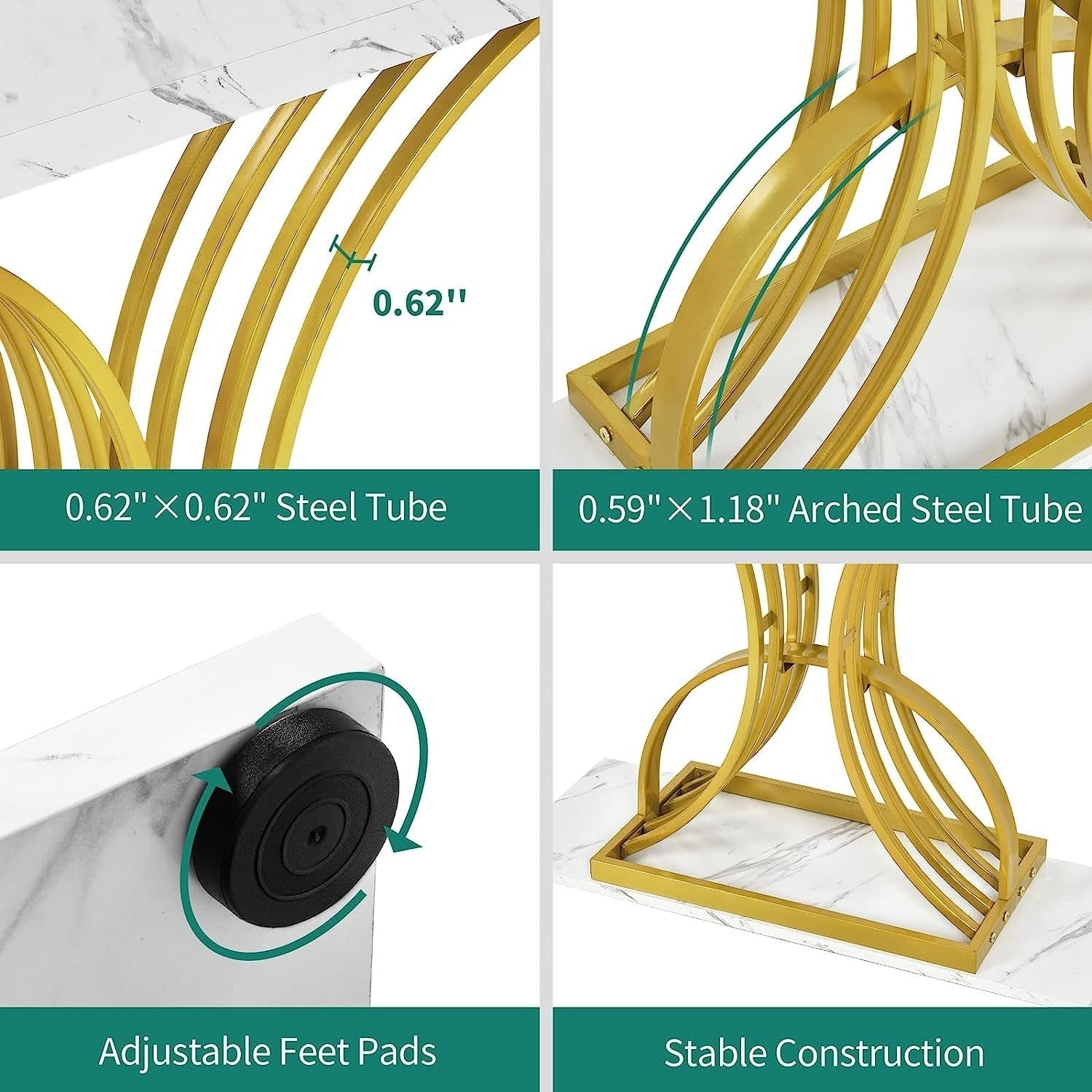 - 1. Cette console est dotée d'un plateau en MDF imitation marbre de 4 cm d'épaisseur, orné d'une superbe texture artistique. Résistant aux rayures et à l'eau, facile à nettoyer, il offre un espace de rangement et de présentation optimal.
