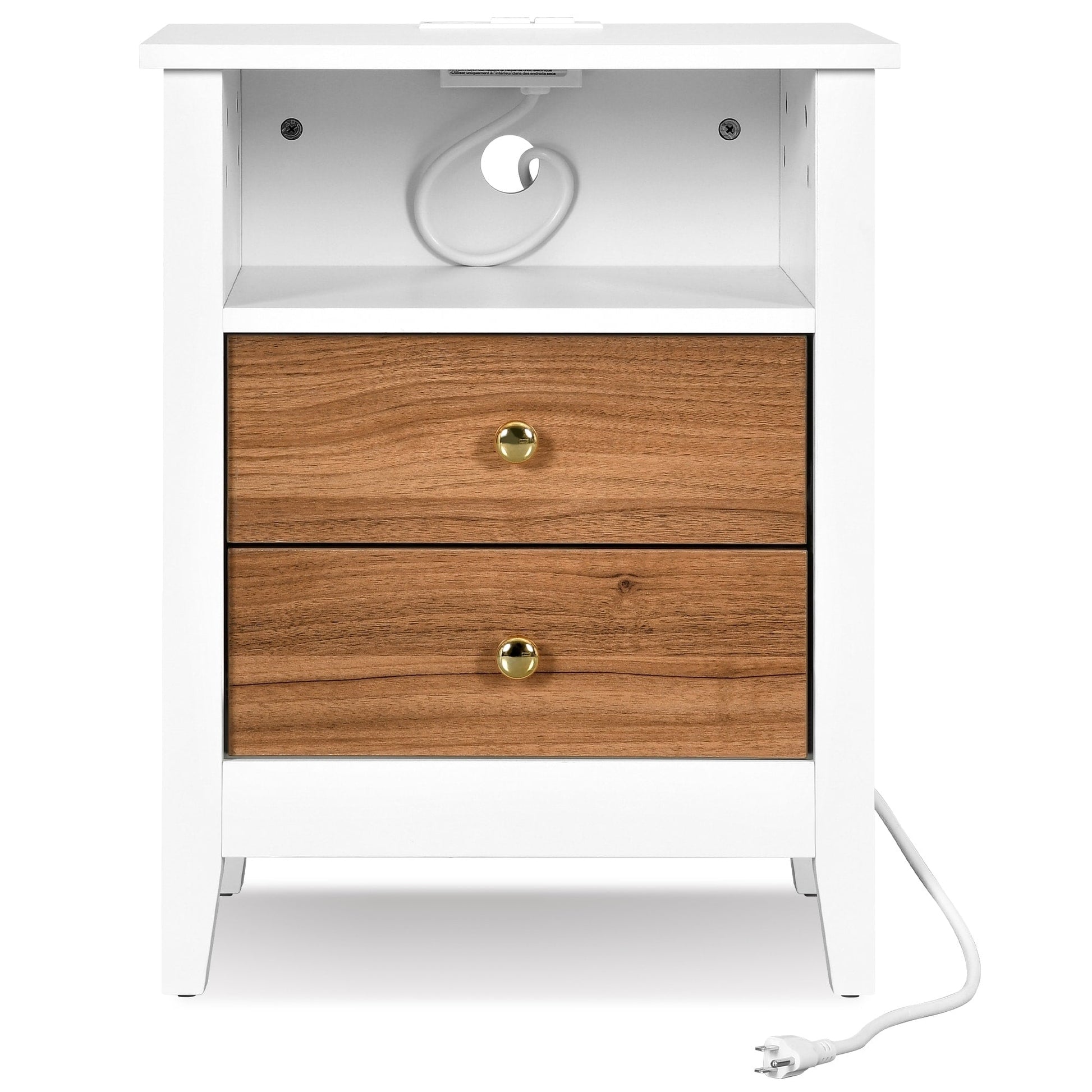 Ensemble de 2 tables de chevet avec station de charge, table d'appoint avec 2 tiroirs, ports et prises USB, table de chevet