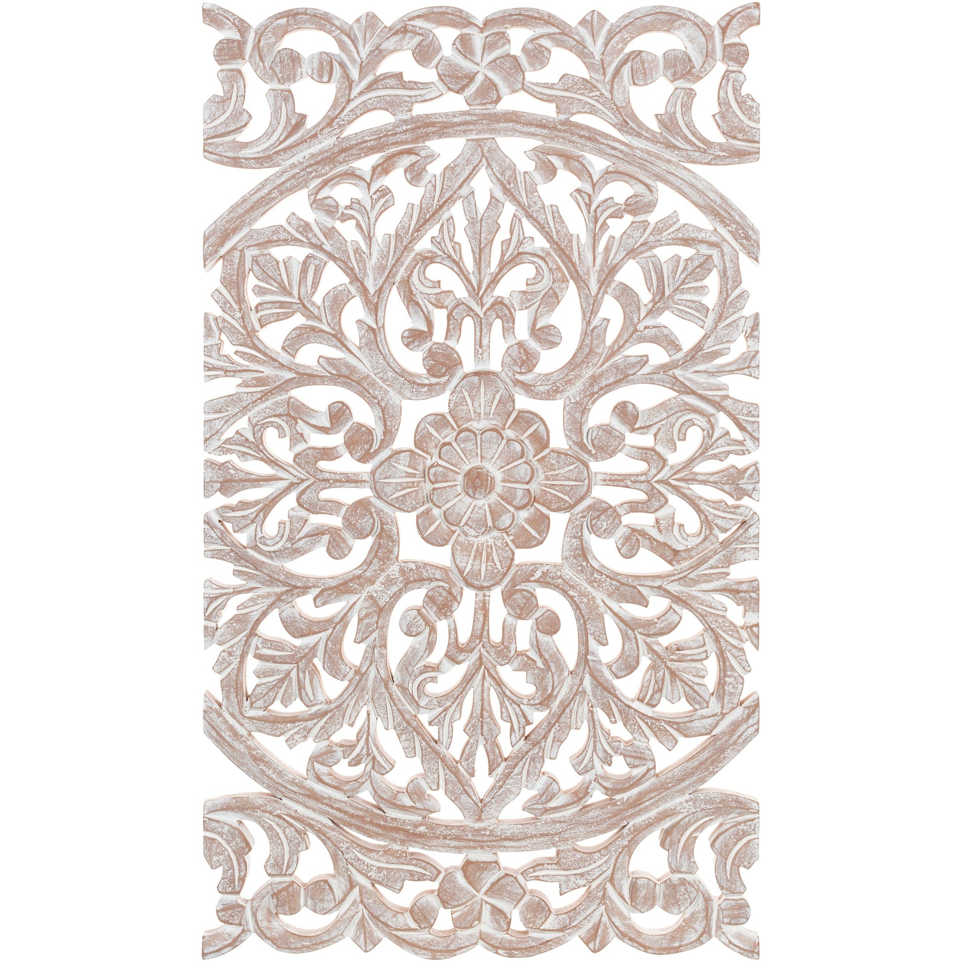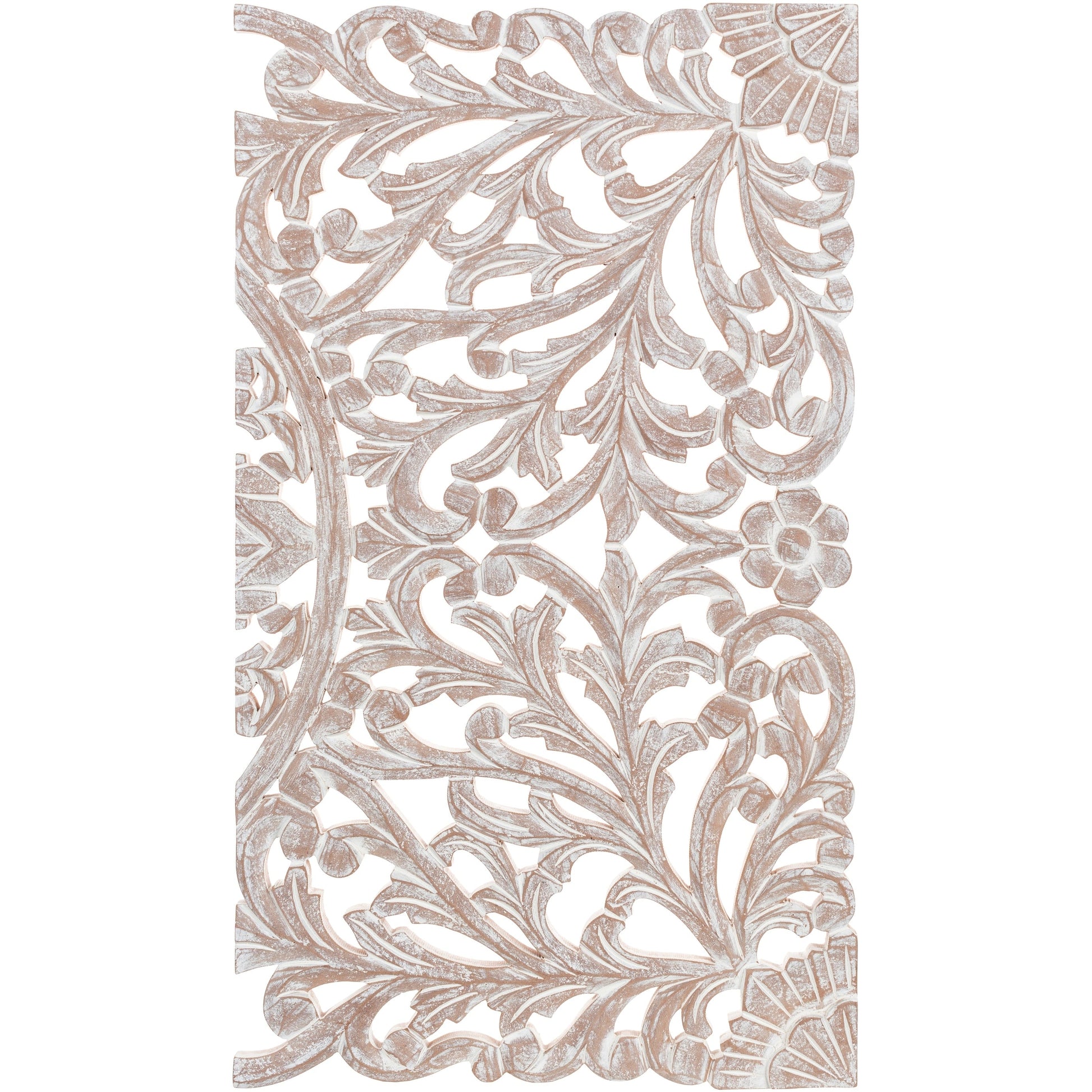Décoration murale à 3 panneaux en bois naturel sculpté à la main, motif floral Norma, 48 x 28 pouces