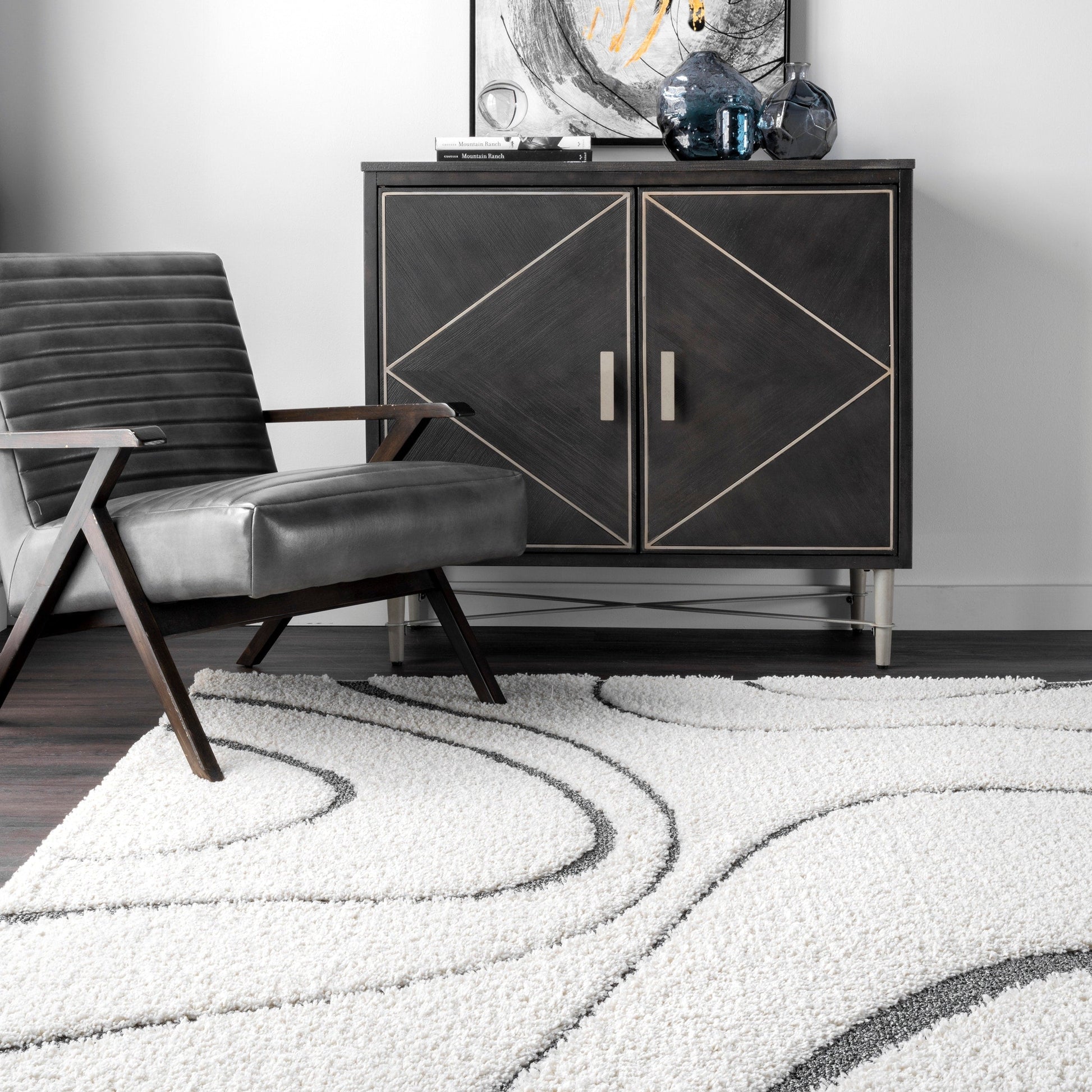 Tapis à poils longs Nuloom Krista contemporain à motifs tourbillonnants