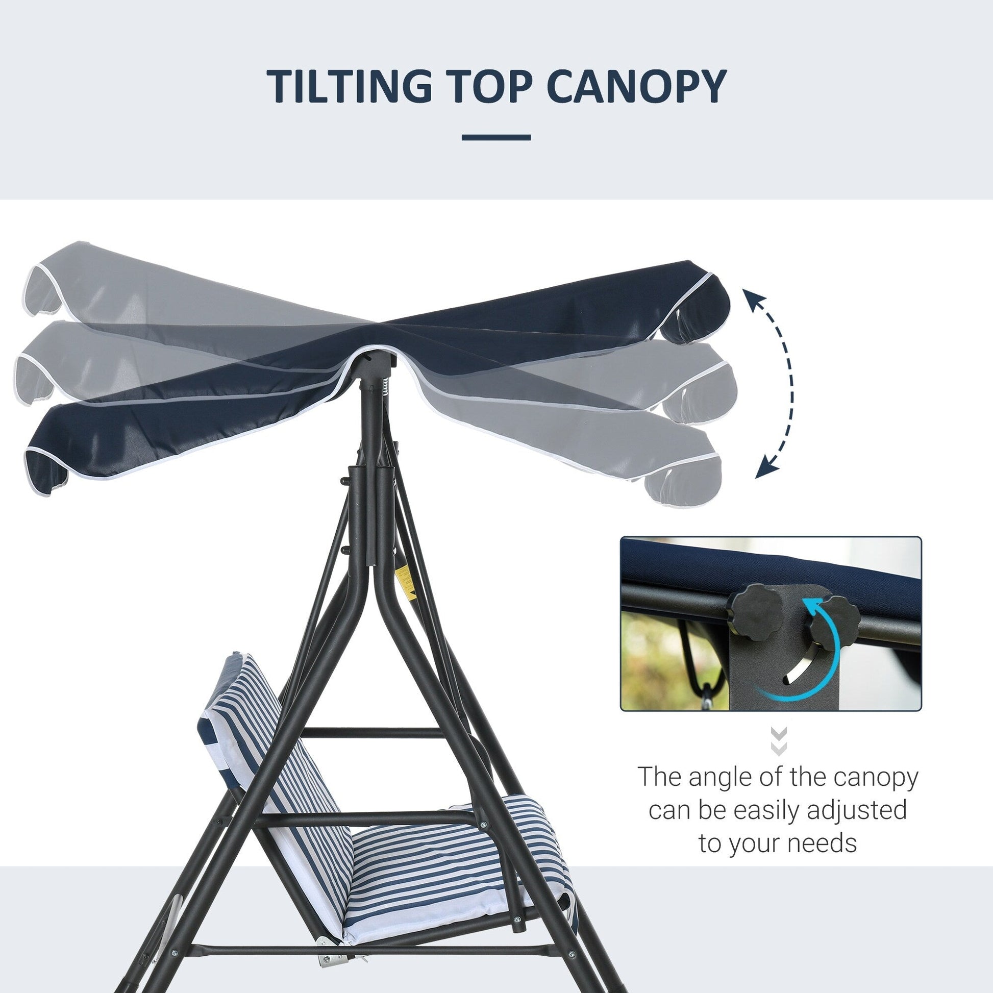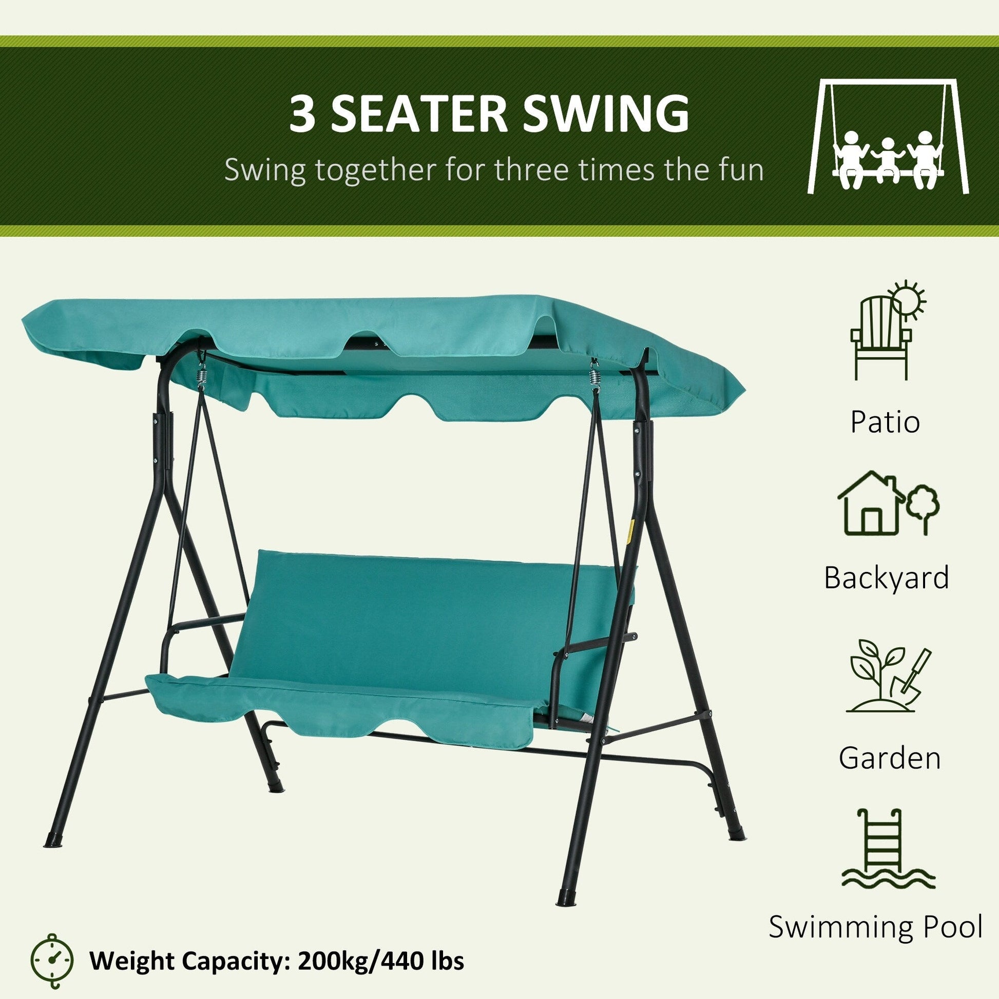 Profitez de l'été sur une balancelle Outsunny. Dotée d'une structure en acier robuste en forme de A stable et de coussins moelleux et épais, elle peut accueillir trois adultes. Installez-la dans des espaces extérieurs comme la véranda, au bord de la piscine, dans le jardin, dans le jardin ou sur le balcon. Son auvent réglable vous permet de vous balancer même en cas de pluie fine. Inclinez le toit pour éviter les coups de soleil et l'éblouissement. Profitez de vous balancer doucement au gré de la brise avec un ami ; l'été s'annonce magnifique.