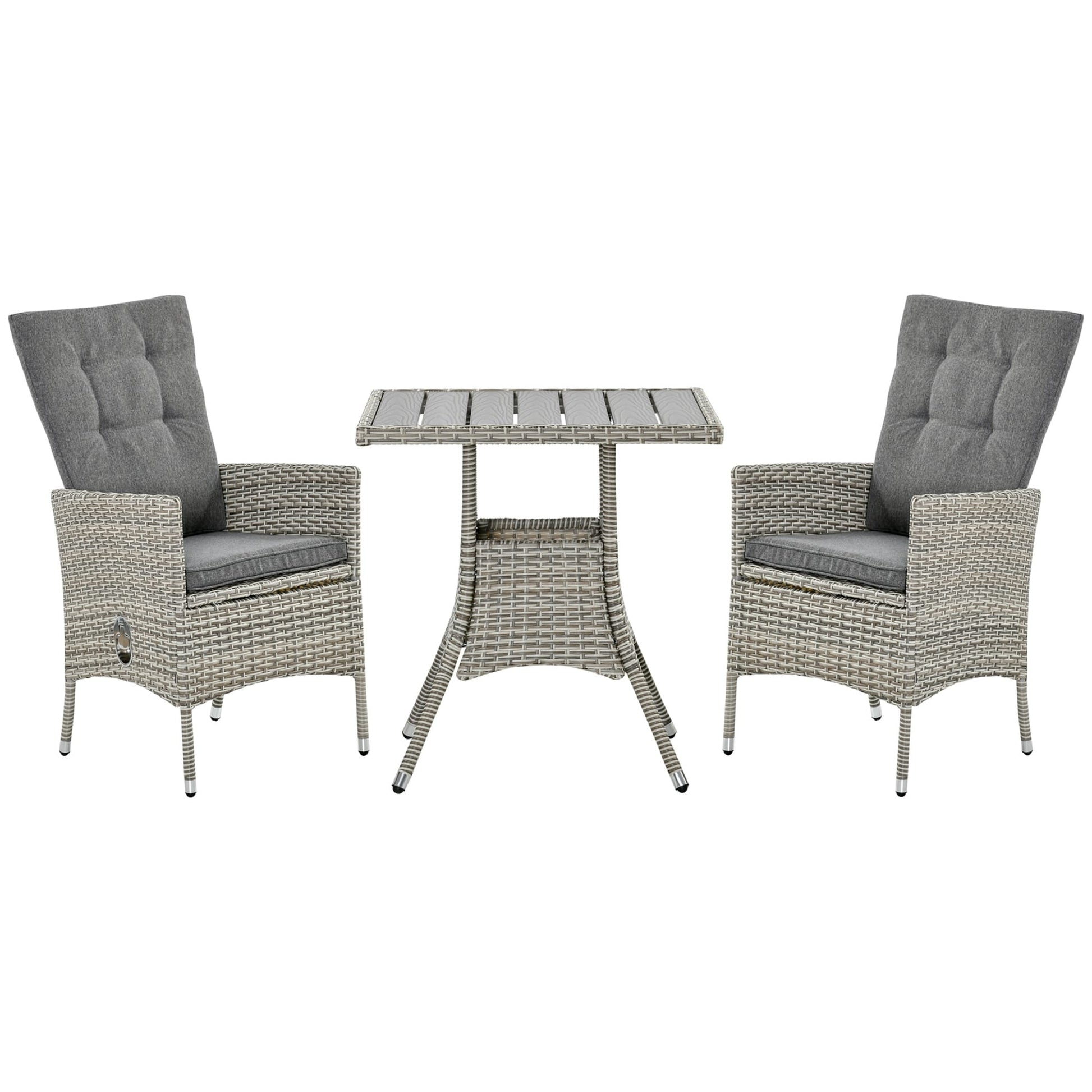 Ensemble de canapés 3 pièces Outsunny pour patio en rotin synthétique, chaises inclinables d'extérieur, table basse avec plateau en plastique grain de bois
