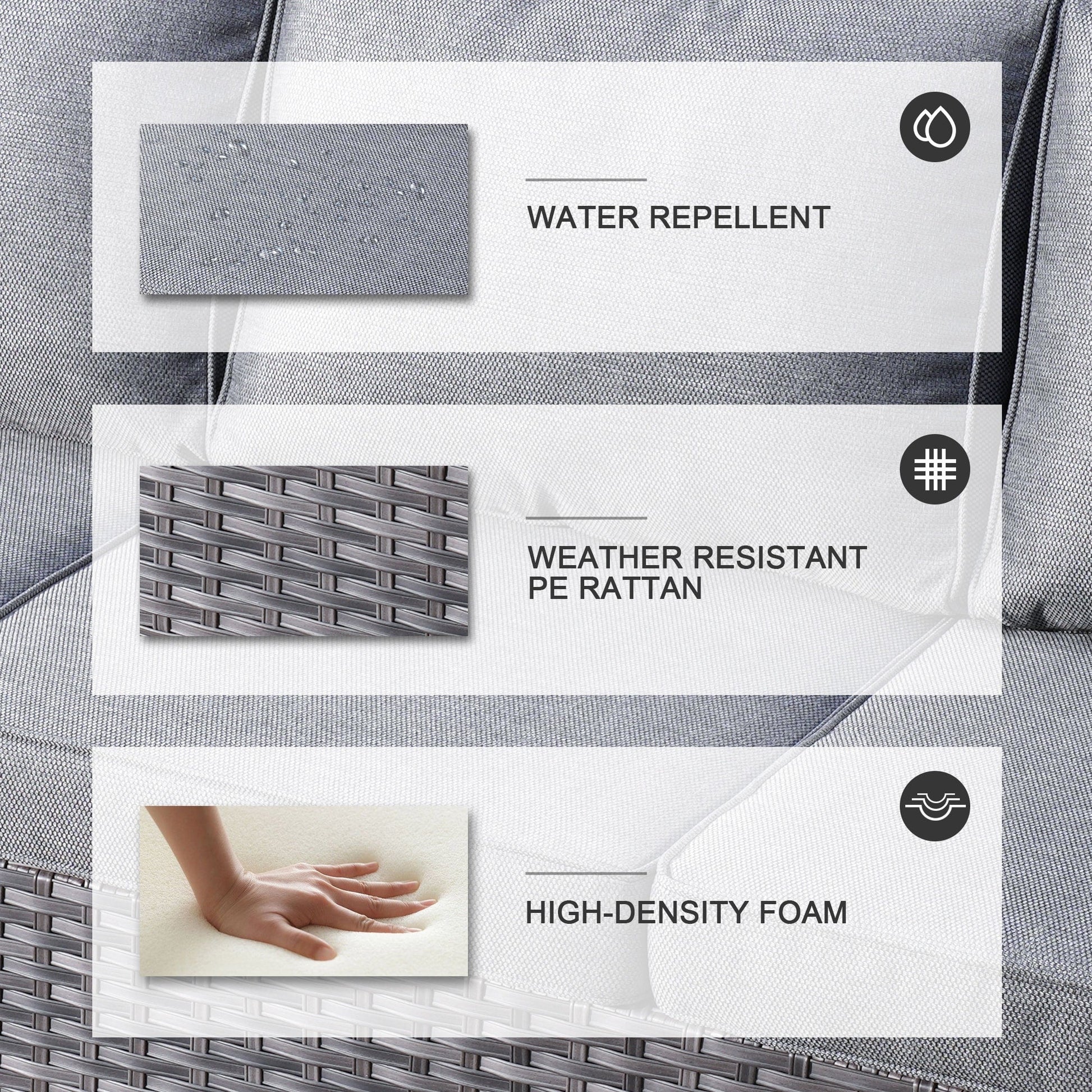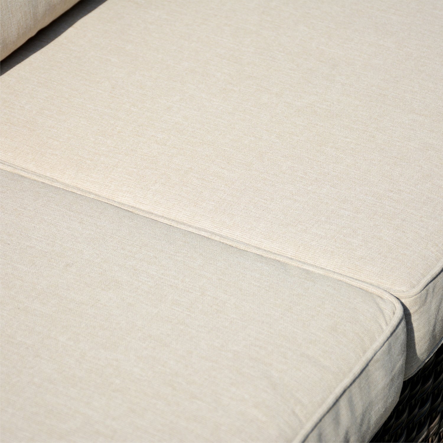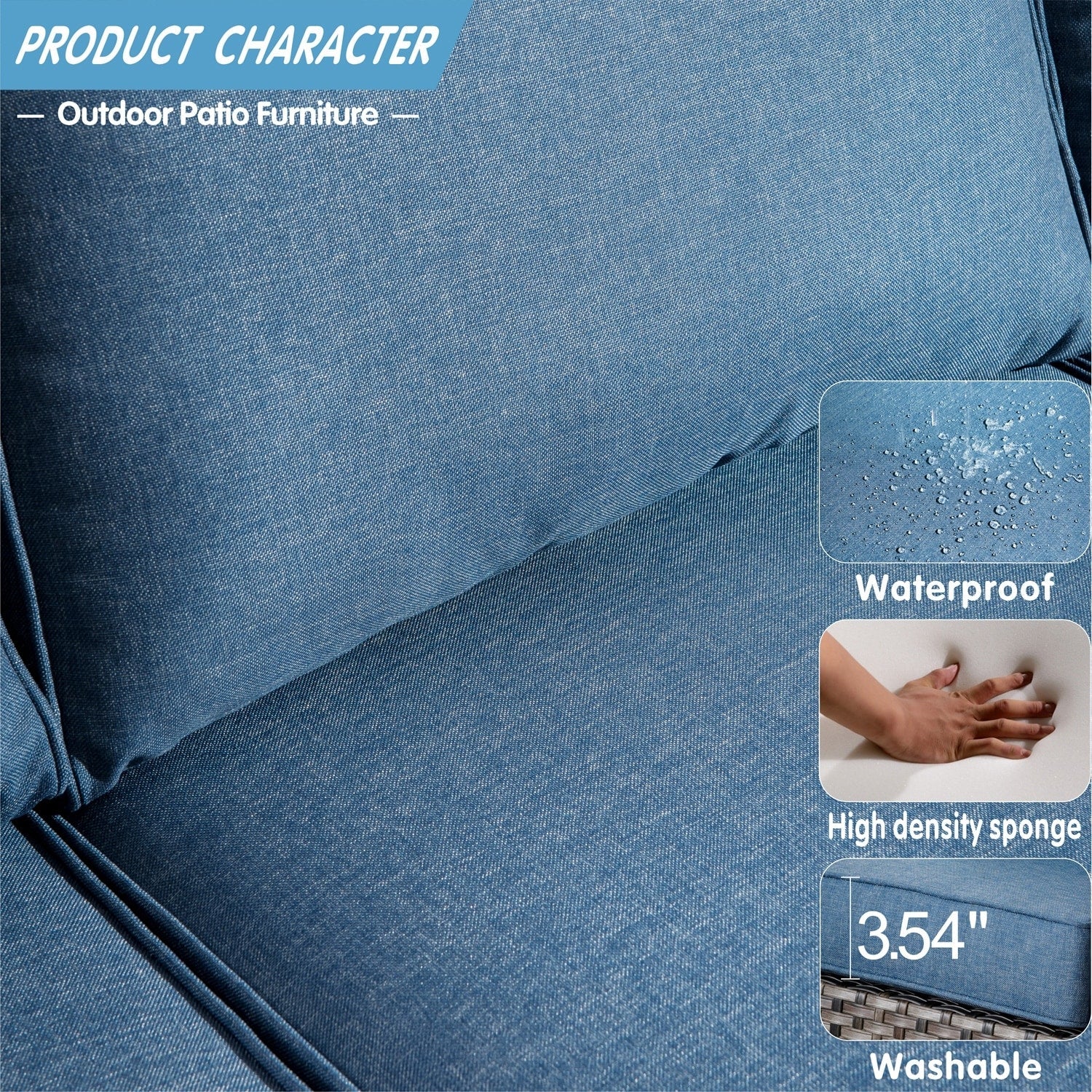 - Résistant à l'eau et aux intempéries : Les coussins et le mobilier sont conçus pour résister à l'eau, ce qui les rend parfaits pour résister à une pluie légère ou à la neige. Bien que cet ensemble résiste facilement à la plupart des conditions météorologiques, il est préférable de le protéger des intempéries extrêmes pour une meilleure longévité.