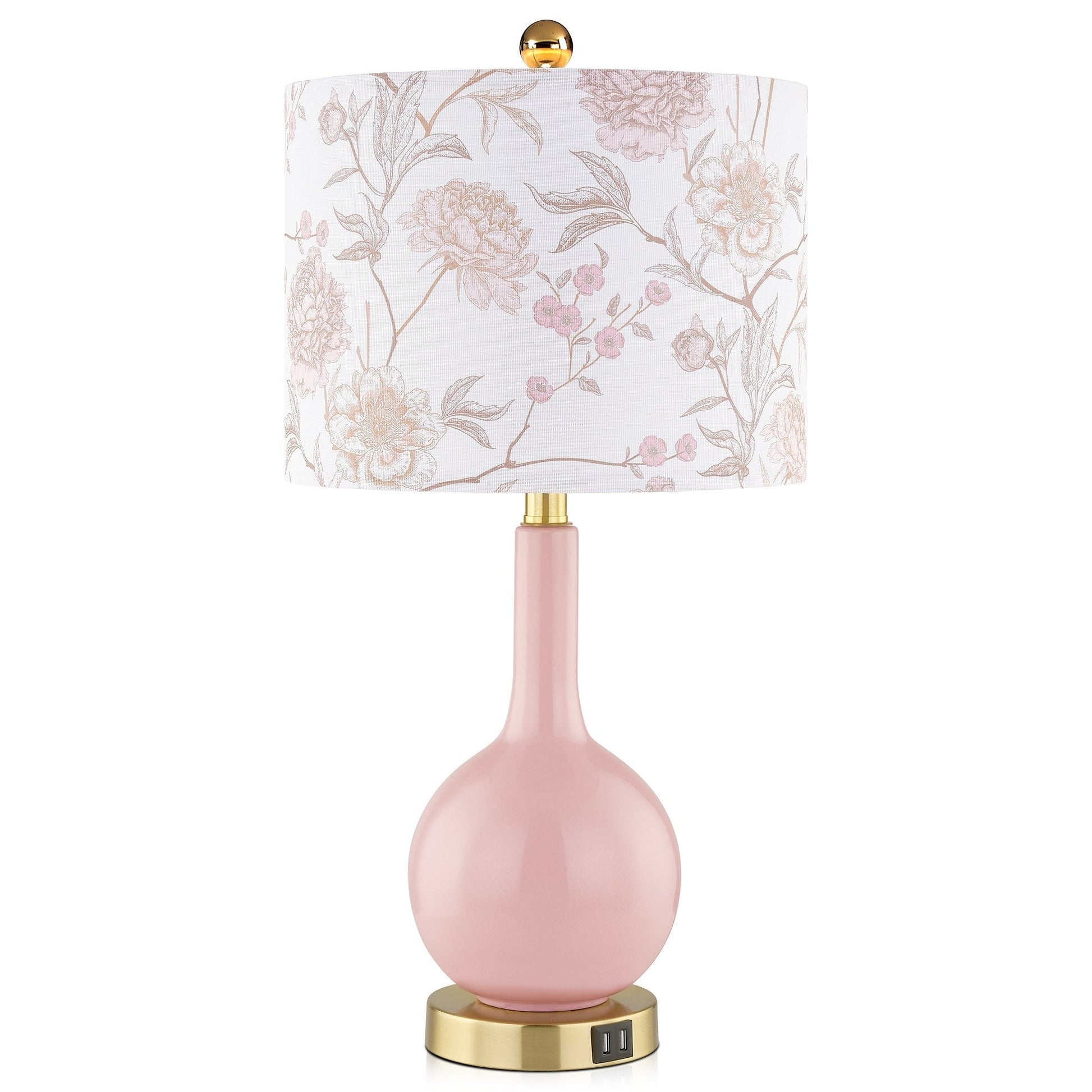 Lampe de table en céramique rose avec variateur tactile à 3 positions et deux ports de charge USB - 12'' x 12'' x 24'' (L x l x H)