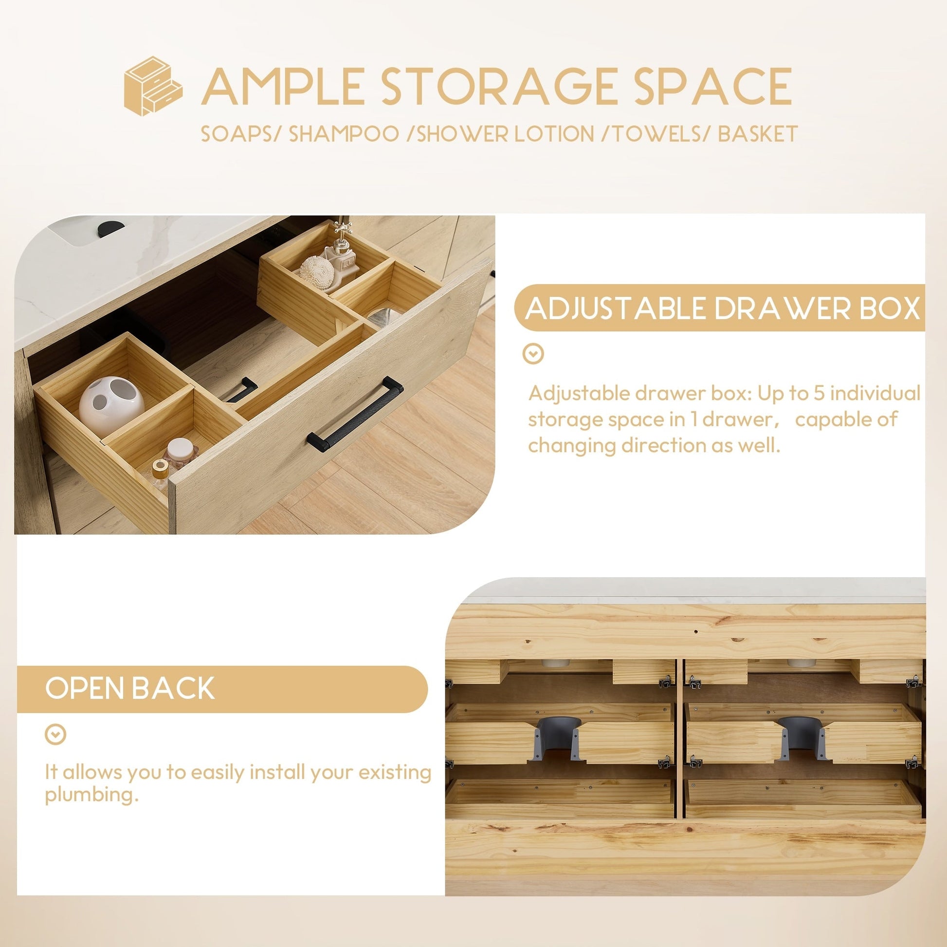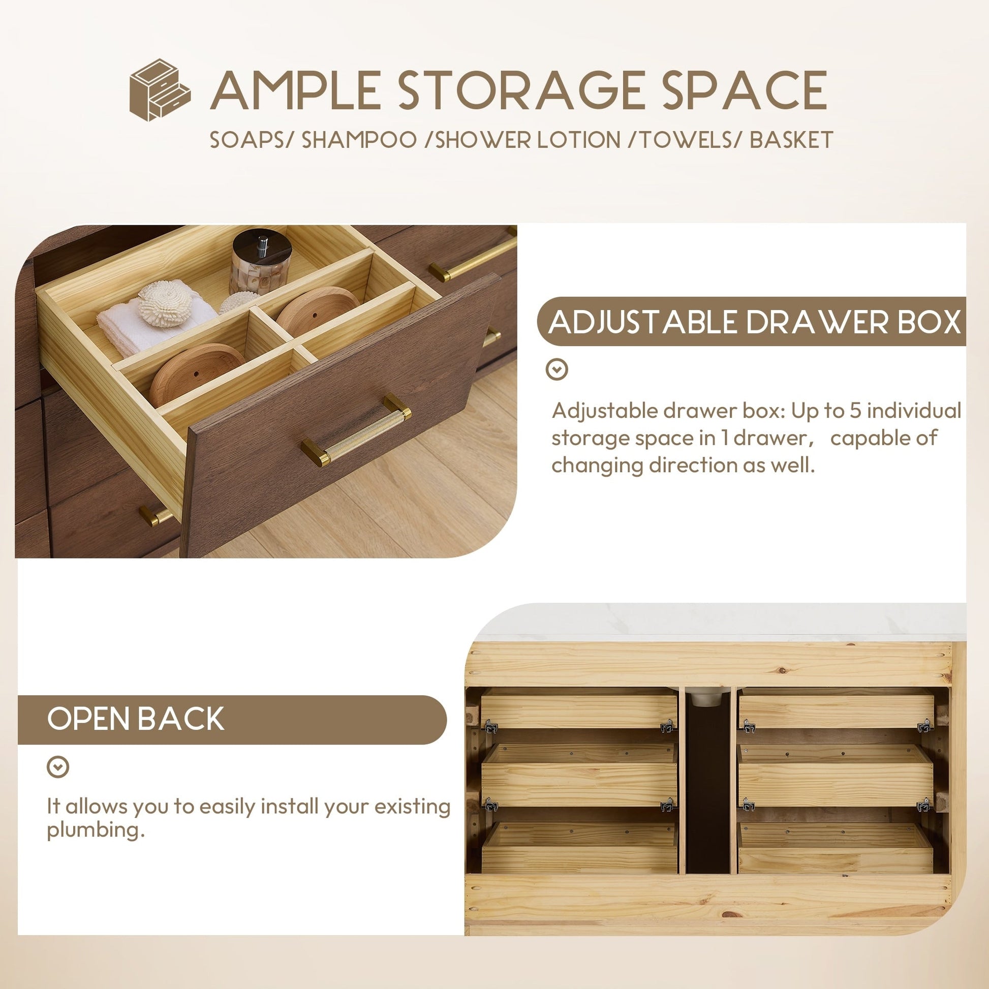 72 pouces - Six tiroirs à queue d'aronde robustes à fermeture douce sont dotés de cloisons intégrées pour un accès facile à tous vos articles de toilette.