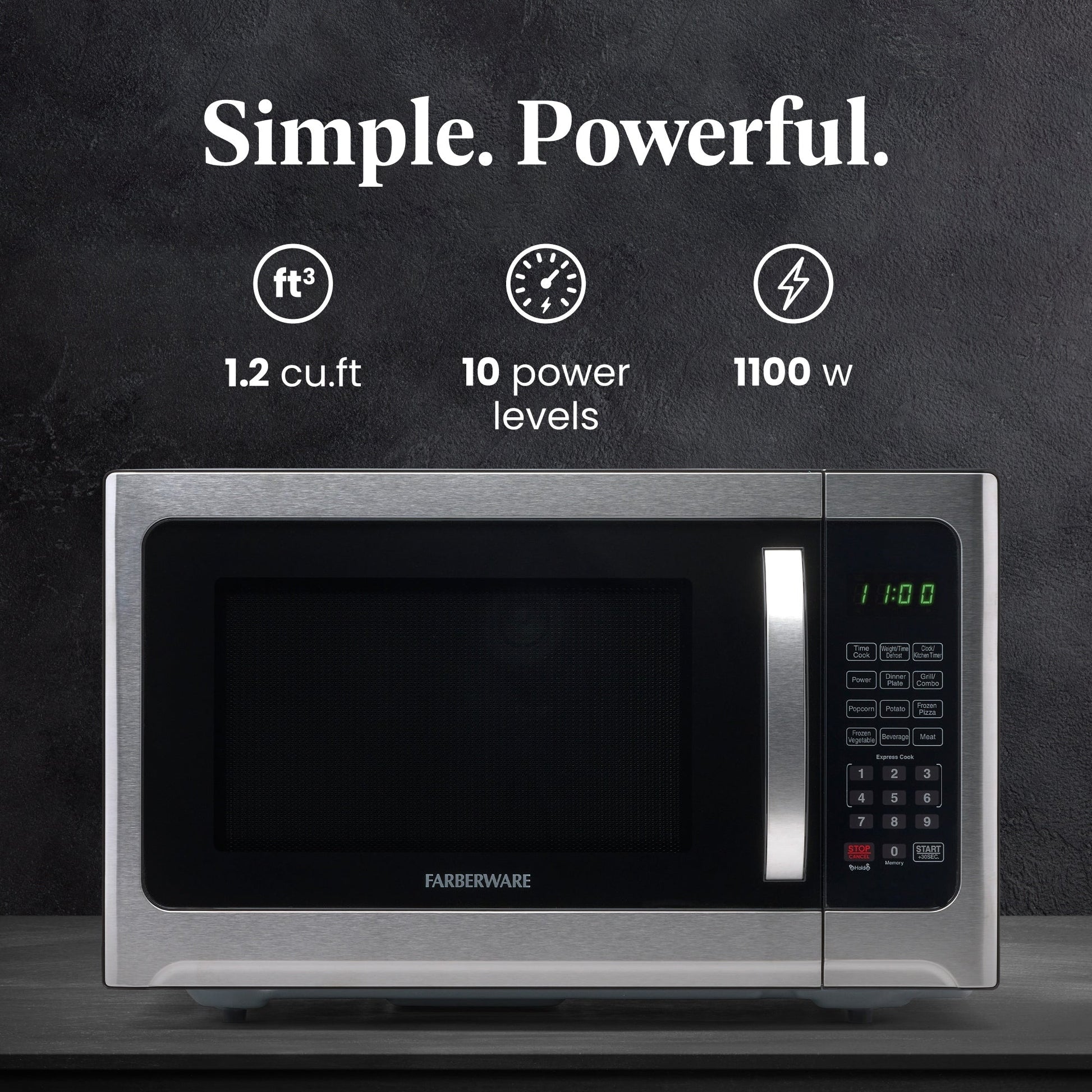 Apportez une touche d'élégance à votre cuisine avec le grand four à micro-ondes Farberware de 1,2 pied cube et 1100 watts avec fonction gril en acier inoxydable. Ce modèle se distingue par sa double fonction de cuisson. Mi-gril, mi-four à micro-ondes, cette technologie vous permet de dorer et de croustiller vos aliments à l'extérieur tout en les conservant juteux à l'intérieur. Un mode économie d'énergie vous permet d'économiser de l'énergie lorsque le micro-ondes n'est pas utilisé. Des fonctionnalités telles que le démarrage instantané de 1 à 6 minutes, le bouton de commande +30 secondes, 10 niveaux de puissance, 2 options de décongélation automatique et la fonction mémoire simplifient la préparation des aliments. Sa fonction de cuisson multi-étapes ajuste le niveau de cuisson en cours de cycle pour une finition parfaite. 9 programmes de cuisson One-Touch vous permettent de réchauffer vos plats du quotidien en quelques secondes. Parmi les autres caractéristiques, citons un écran LED vert avec minuterie et horloge, ainsi qu'une sécurité enfant pour éviter toute utilisation accidentelle.