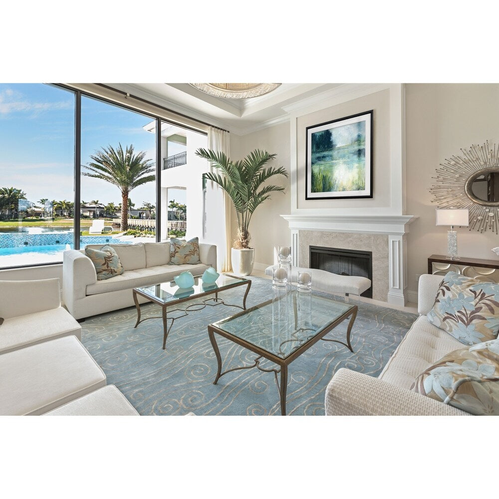 Reflections Edge - Impression encadrée personnalisée - bleu, blanc, gris, jaune, vert, argent, or