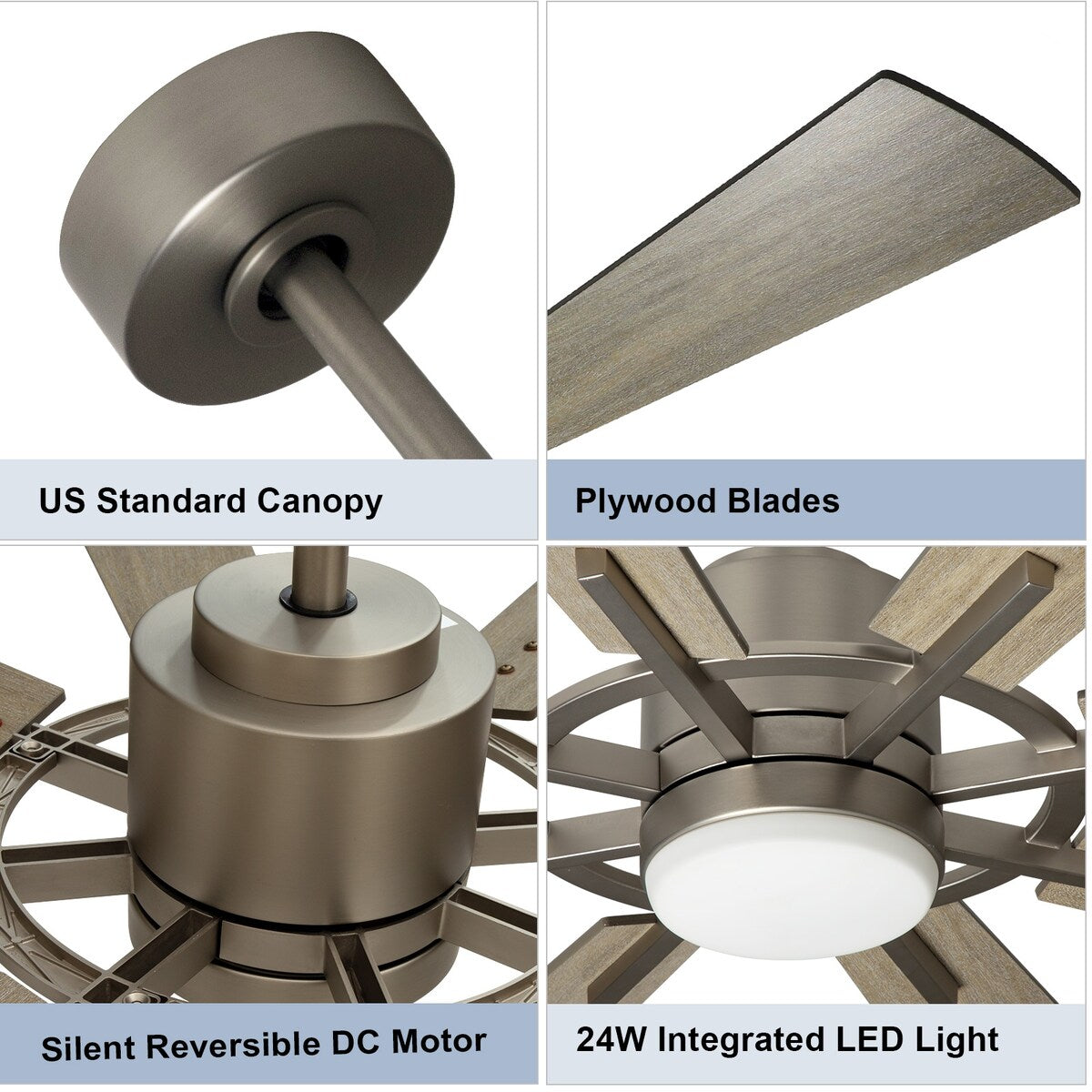 Ventilateur de plafond télécommandé avec lumières, grandes 8 pales en bois
