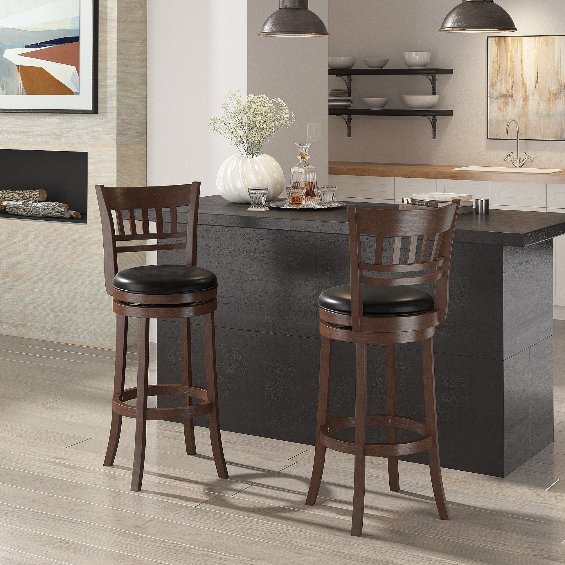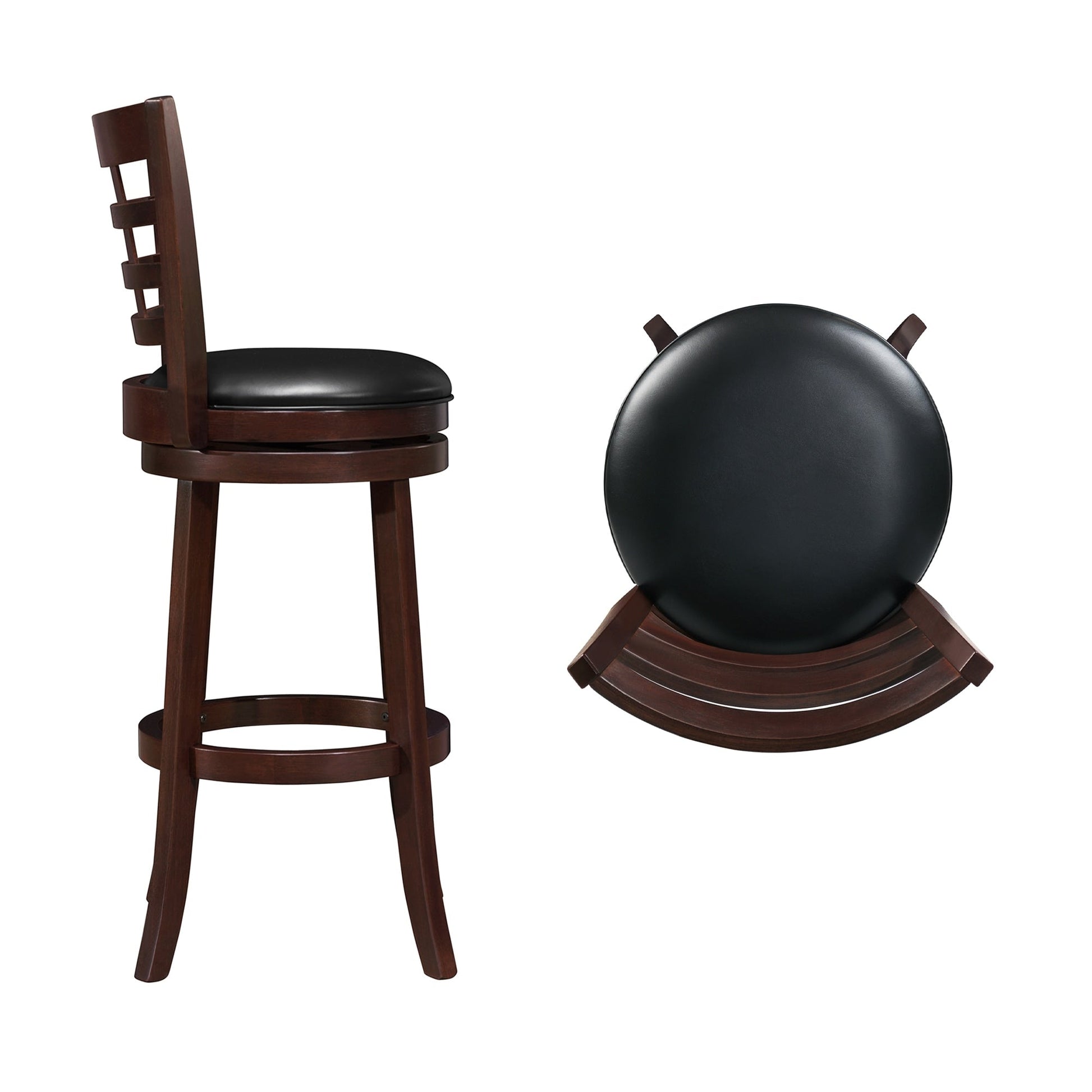 Fabriqué en bois d'hévéa durable, ce tabouret pivotant à dossier rembourré affiche un style classique et élégant et offre un soutien confortable pour les repas quotidiens. Une finition bois riche complète la structure, tandis qu'un repose-pieds et une assise rembourrée offrent un confort optimal au quotidien. La fonction pivotante de ce tabouret offre une mobilité accrue et facilite les conversations informelles entre amis et en famille pendant les repas. Le dossier incurvé offre un soutien supplémentaire, vous permettant de vous asseoir confortablement.