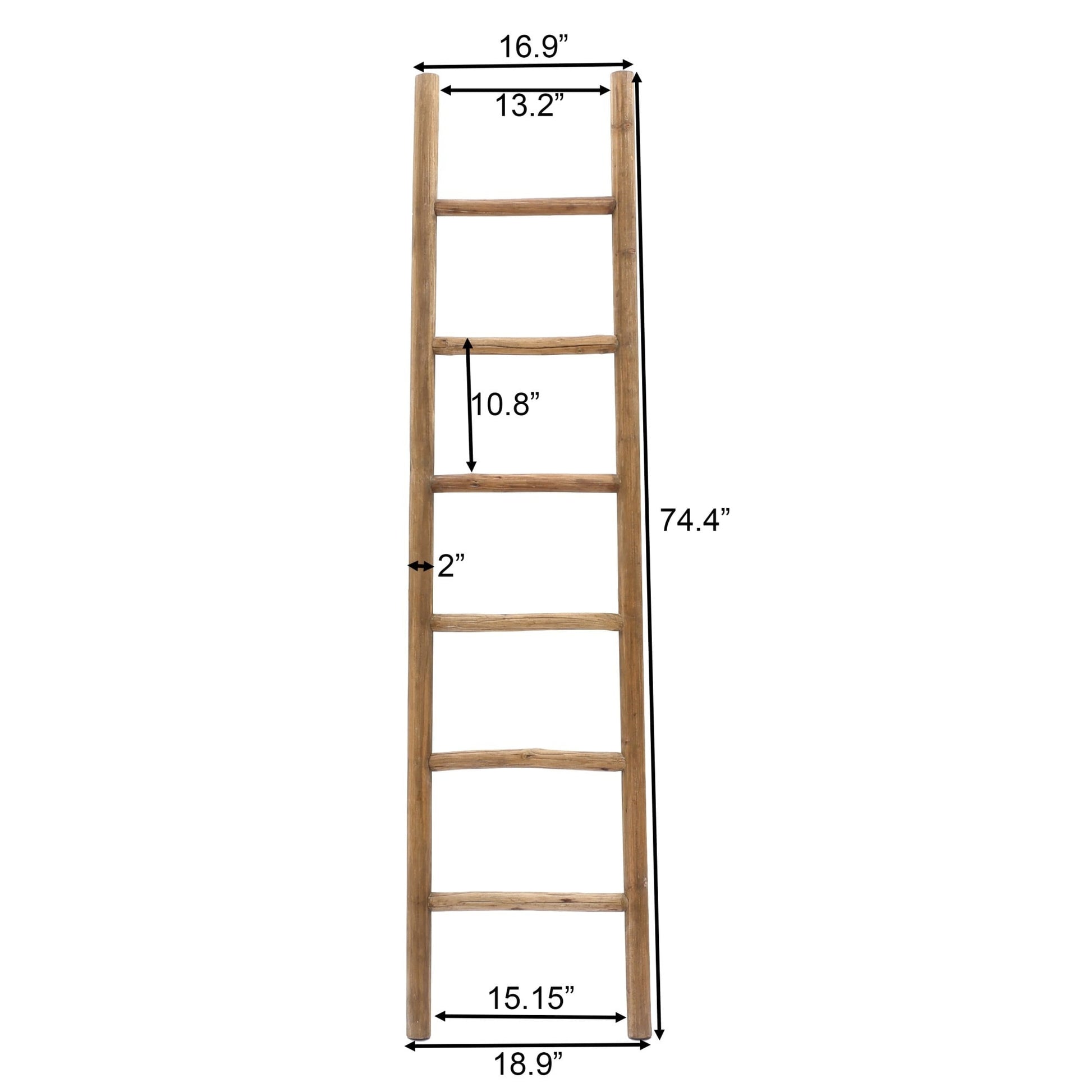 Échelle décorative rustique en bois naturel de 1,8 m (74,4 po H x 18,9 po L x 2 po P)