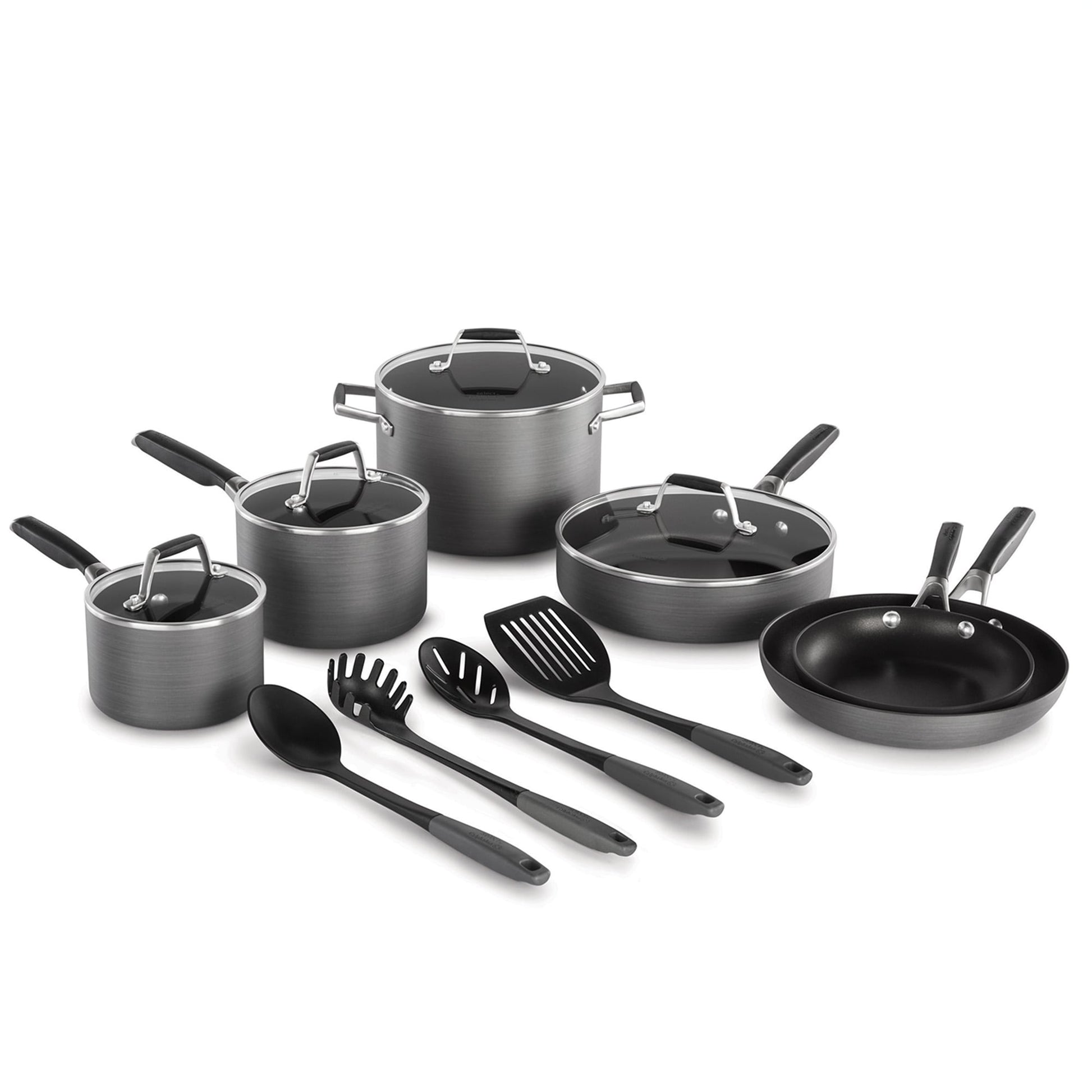 Batterie de cuisine antiadhésive anodisée dure Select by Calphalon, ensemble de 14 pièces