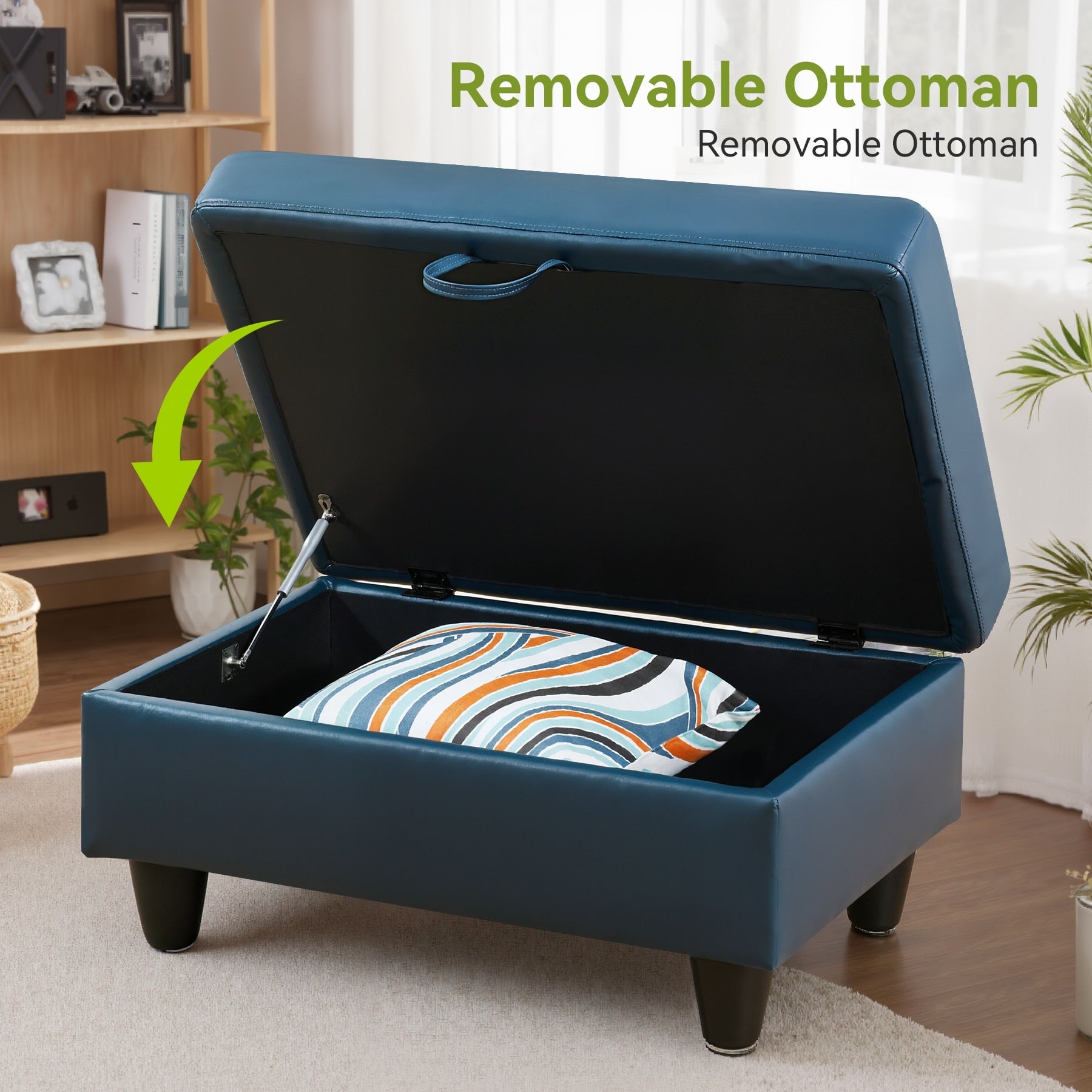 C. Le pouf avec fonction de rangement, peut stocker l'usage quotidien de petits objets, ce qui est flexible et pratique