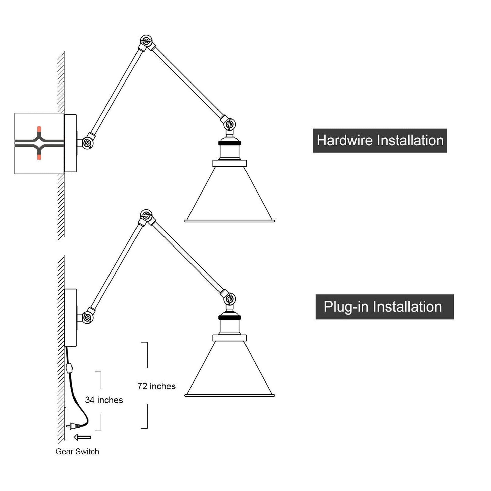 Lot de 2 appliques murales modernes à bras pivotant réglables et câblées