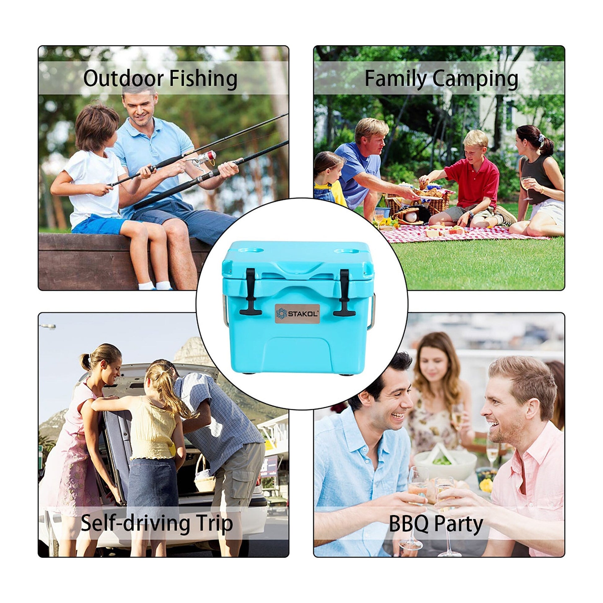 Cette glacière aux performances irréprochables et à la construction rotomoulée indestructible est sans aucun doute votre partenaire idéal pour vos activités de plein air. Fabriquée en PE et PU isolants de qualité supérieure, cette glacière de 16 litres est non toxique et conserve vos aliments, boissons et fruits au frais pendant 3 à 5 jours. Portable, elle s'adapte à diverses situations, comme les barbecues, les pique-niques, la pêche, le camping ou les voyages en voiture. Elle peut également servir à maintenir les aliments au chaud. Elle est équipée de deux porte-gobelets, de loquets de sécurité, d'un couvercle verrouillable, d'une poignée en acier inoxydable, d'un bouchon de vidange et de repose-pieds. Tous ces détails bien pensés en font une glacière idéale.