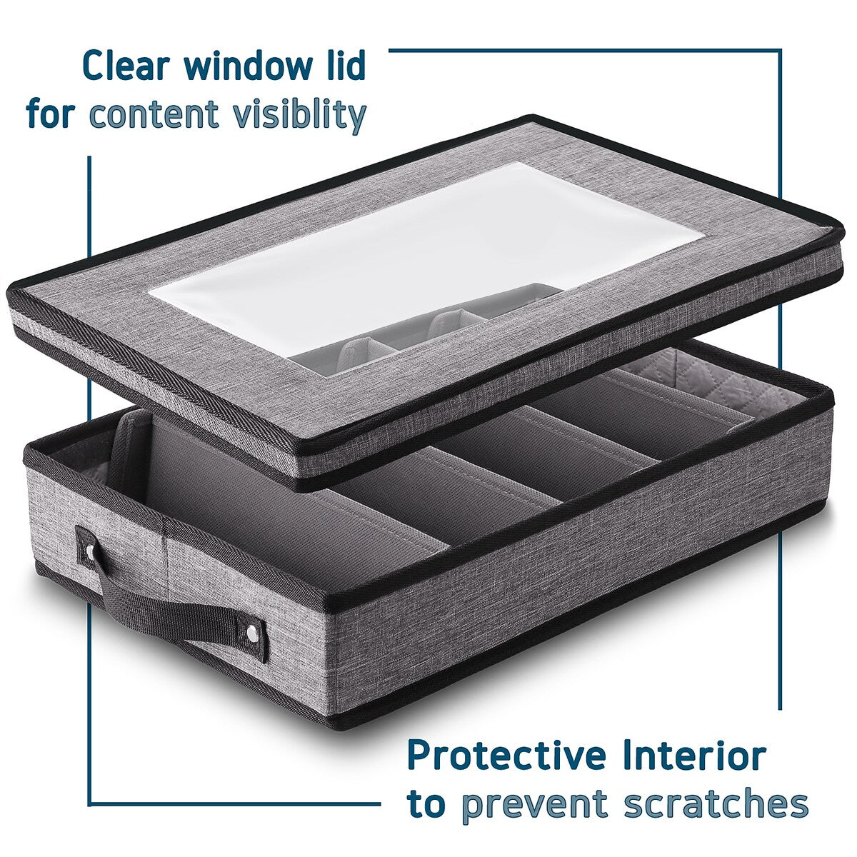 - Ensemble de 8 pièces : 4 boîtes de rangement pour assiettes, 1 boîte de rangement pour tasses, 1 boîte pour verres à pied, 1 boîte pour couverts et 1 boîte pour plats.