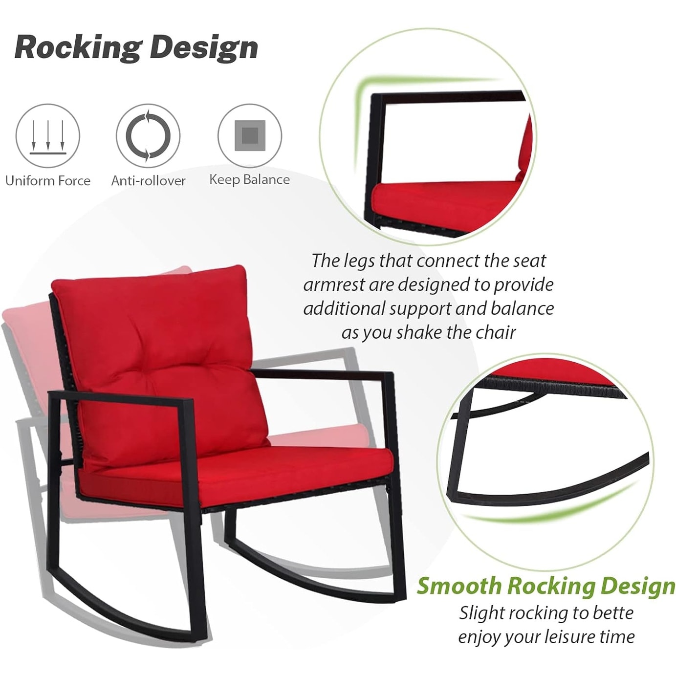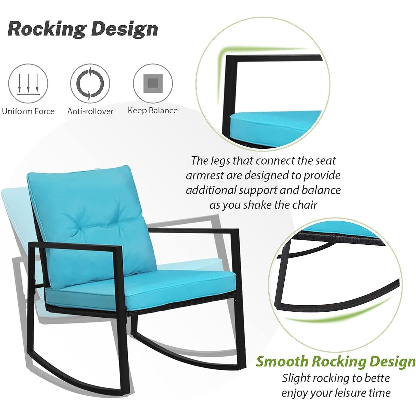 Détendez-vous avec style grâce à l'ensemble bistrot d'extérieur 3 pièces SUNCROWN en osier à bascule. Cet ensemble robuste comprend deux chaises à bascule rembourrées et une table basse carrée, le tout fabriqué avec une structure en fer et de l'osier tressé en polyéthylène. Les chaises sont dotées de coussins en polyester avec rembourrage en éponge de différentes couleurs et de housses zippées. Avec son design contemporain et sa finition noire, cet ensemble s'intègre parfaitement à tous les intérieurs.