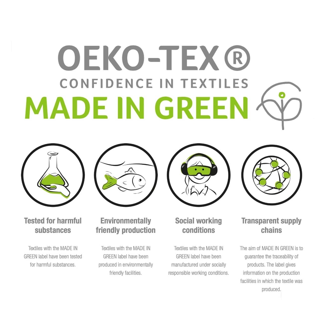 - Nous nous engageons à rendre les produits plus sûrs pour vous et plus sûrs pour le monde ; certifié STANDARD 100 par OEKO-TEX ; chaque composant de ce produit a été testé et vérifié sans substances nocives et produit de manière durable
