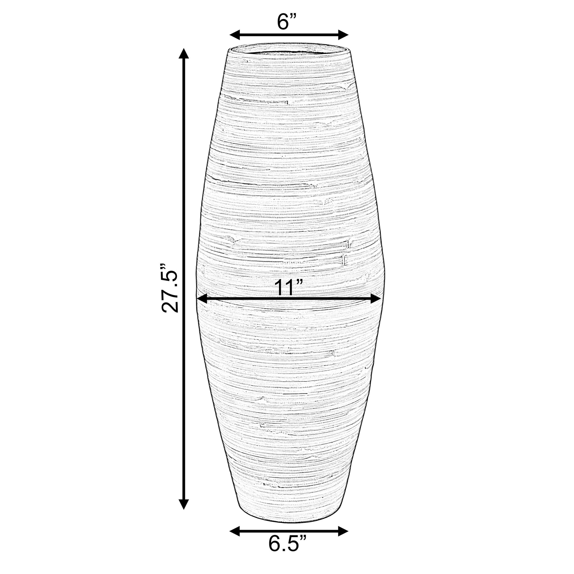 - Dimensions : 71 cm de hauteur, 28 cm de diamètre à son point le plus large et 15 cm d’ouverture. Fabriqué artisanalement en bambou naturel, ce vase apporte une touche d’élégance et de naturel aux salons, salles à manger, entrées et halls d’hôtel. Sa forme cylindrique élancée et sa finition en bambou s’harmonisent avec les décors modernes, rustiques ou bohèmes, en faisant une pièce maîtresse polyvalente pour tout espace.