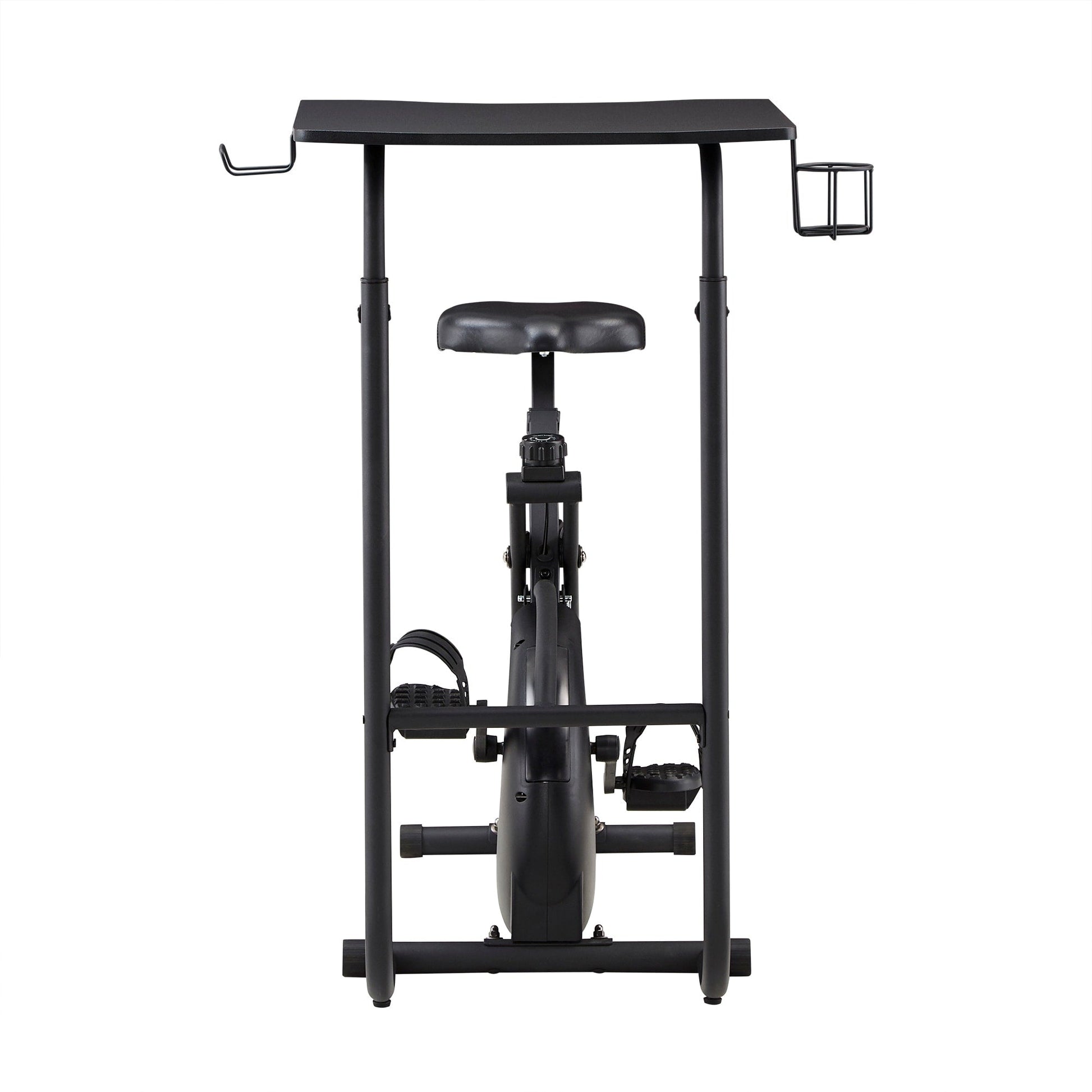 Restez actif tout en travaillant grâce au bureau pour vélo d'appartement Virgil d'iNSPIRE Q Classic. Idéal pour les petits comme les grands espaces, ce meuble ergonomique allie vélo d'appartement et bureau. Confort et sécurité sont assurés par le siège rembourré et les pédales texturées avec sangles. Le plateau réglable est équipé de deux supports latéraux pour bouteille d'eau et écouteurs, pour que tout le nécessaire soit à portée de main.