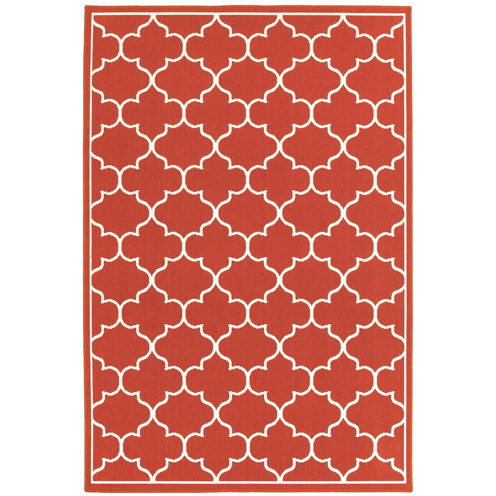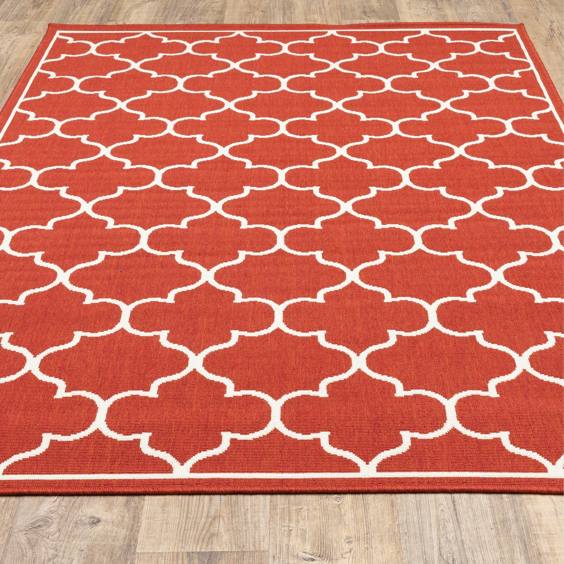 Tapis d'intérieur/extérieur Vista Home Martinique à motif treillis blanc cassé/rouge brique.