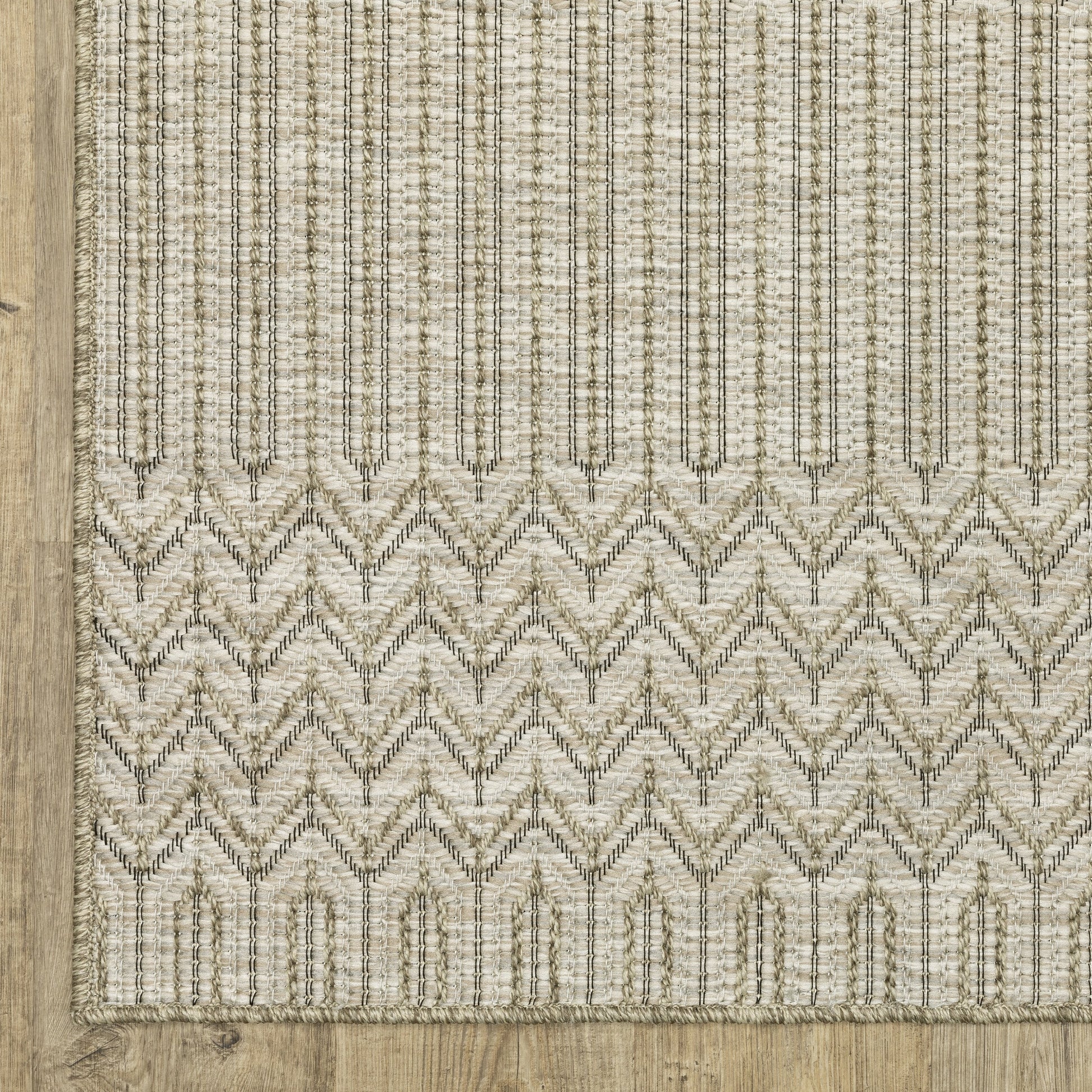 - Comporte un motif géométrique tissé
