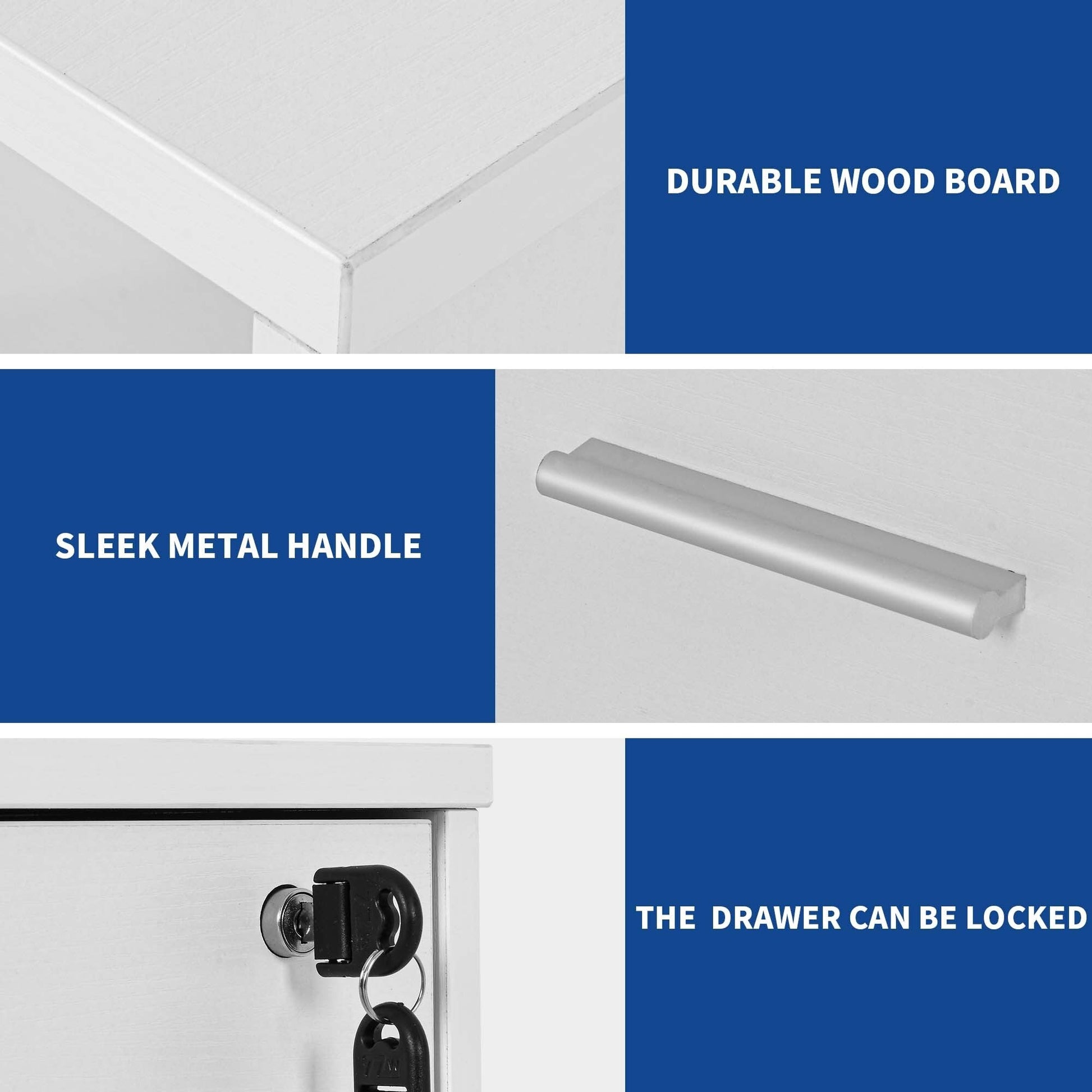 Classeur latéral mobile en bois avec station de charge verrouillable, compatible avec les dossiers de format A4, Lettre et Légal
