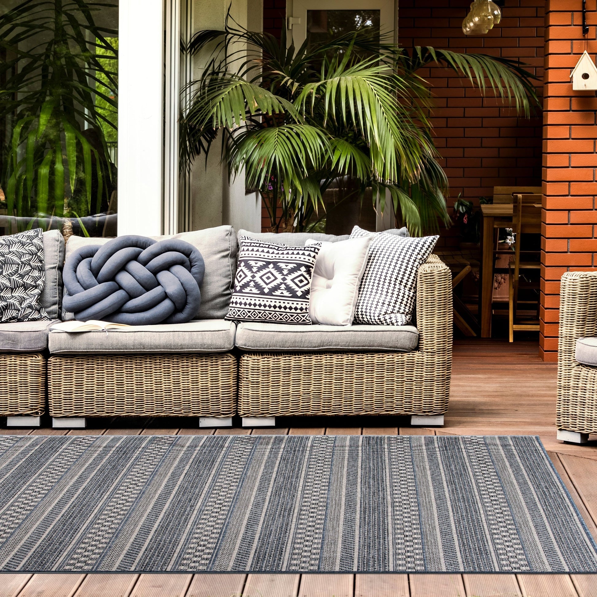 Tapis d'intérieur/extérieur bohème à rayures géométriques World Rug Gallery