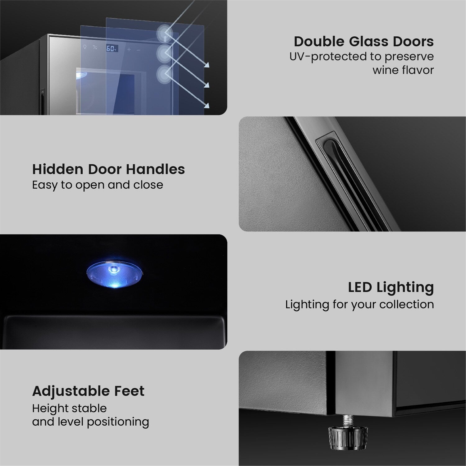 - Conservation avancée : équipé d'un ventilateur interne pour une distribution uniforme du refroidissement et un contrôle de l'humidité, assurant une conservation optimale du vin pour des saveurs et des arômes améliorés.
